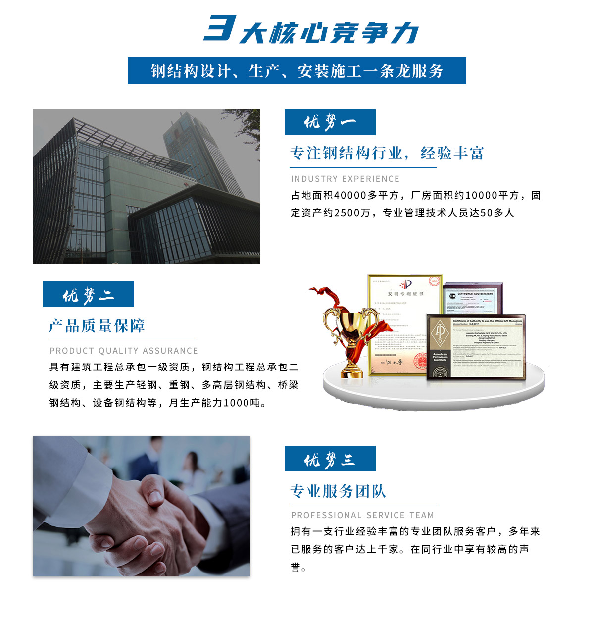 南京綠野建設集團有限公司鋼結(jié)構(gòu)分公司為民營股份制企業(yè),位于104旁的南京江寧土橋工業(yè)園內(nèi),交通非常便捷,占地面積40000多平方,廠房面積約10000平方,固定資產(chǎn)約2500萬,管理技術(shù)人員達50多人。公司廠區(qū)的整體設計為花園式工廠,配有現(xiàn)代化標準廠房,辦公樓、小橋、流水、臺等建筑,環(huán)境十分優(yōu)美。 南京鋼結(jié)構(gòu)廠家綠野集團專門從事鋼結(jié)構(gòu)設計、生產(chǎn)、安裝施工服務,具有建筑工程總承包一級資質(zhì),鋼結(jié)構(gòu)工程總承包二級資質(zhì),是中國工程機械工業(yè)協(xié)會混凝土機械分會會員。目前公司主要生產(chǎn)輕鋼、重鋼、多高層鋼結(jié)構(gòu)、橋梁鋼結(jié)構(gòu)、設備鋼結(jié)構(gòu)等,月生產(chǎn)能力1000噸。 公司采用現(xiàn)代化的生產(chǎn)管理模式,組織機構(gòu)齊全,主要為總經(jīng)理室、企管辦、財務部、營銷部、技術(shù)部、質(zhì)量安全部、物管部、工程部以及產(chǎn)品加工中心等。生產(chǎn)實行項目管理機制,項目經(jīng)理負責人機制、項目成本*核算制。在工程實施過程中全程貫徹質(zhì)量、環(huán)境與職業(yè)健康三標合-的管理體系,有力的保障了工...